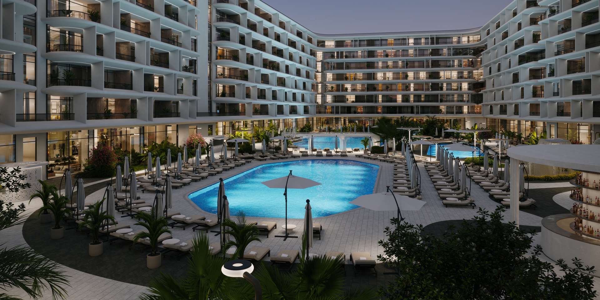 В Mandarin Garden предусмотрен масштабный комплекс бассейнов общей площадью 1 500 м² — одна из ключевых рекреационных зон комплекса