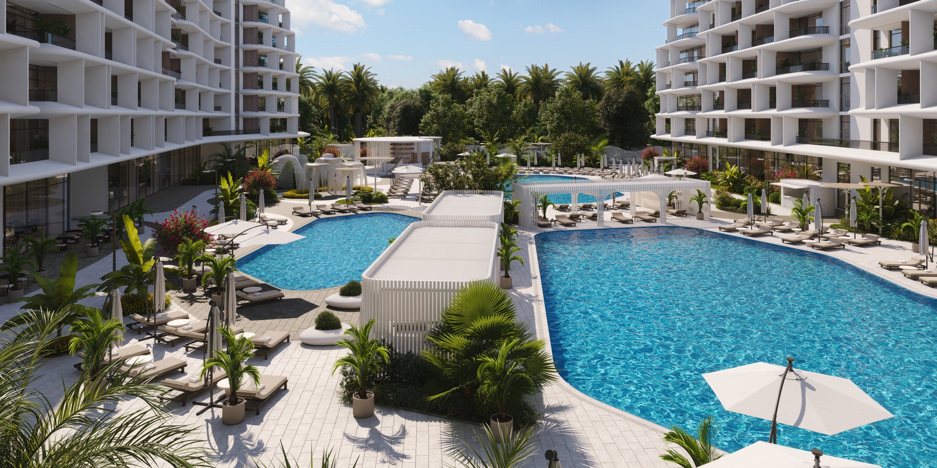 В Mandarin Garden предусмотрен масштабный комплекс бассейнов общей площадью 1 500 м² — одна из ключевых рекреационных зон комплекса